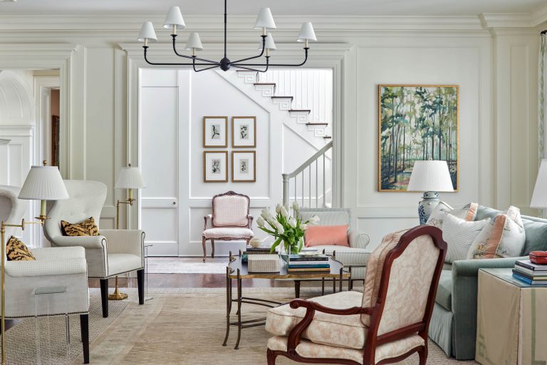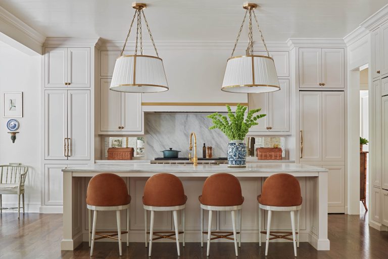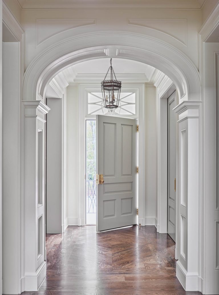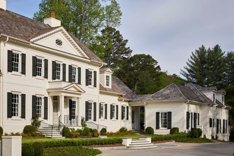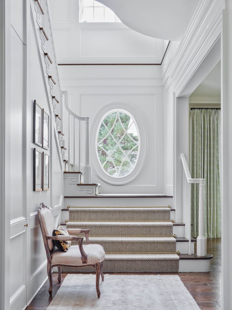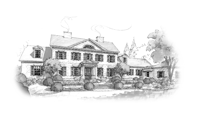 The renovated house is Classic and American, with a formality that is balanced by familiarity. Painted brick is tempered by a cedar shingle roof; overt symmetry is relaxed by carefully placed asymmetrical moments in the footprint. On the interior, the new floor plan has a logical flow that is enhanced by thoughtful room arrangements and centerlines that weave throughout the house. A centrally located stair hall is light-filled and dramatic and is an ever-present element in the experience of the house. Millwork and architectural details are rich and robust, with lighthearted interpretations of classical elements.
