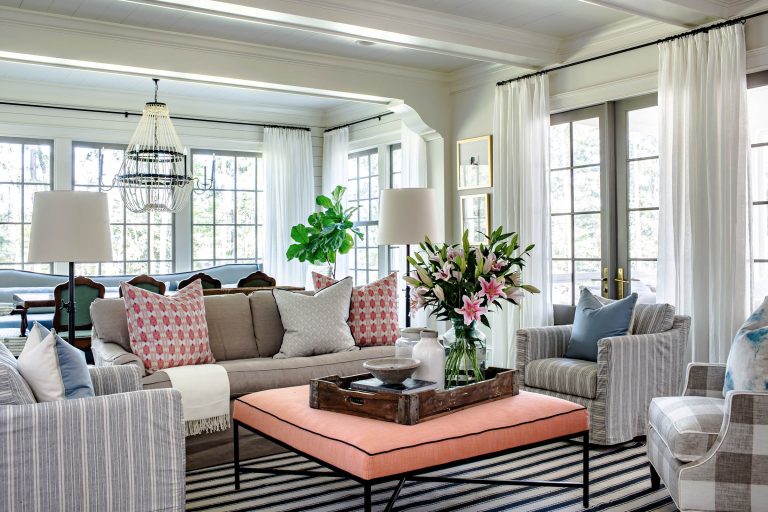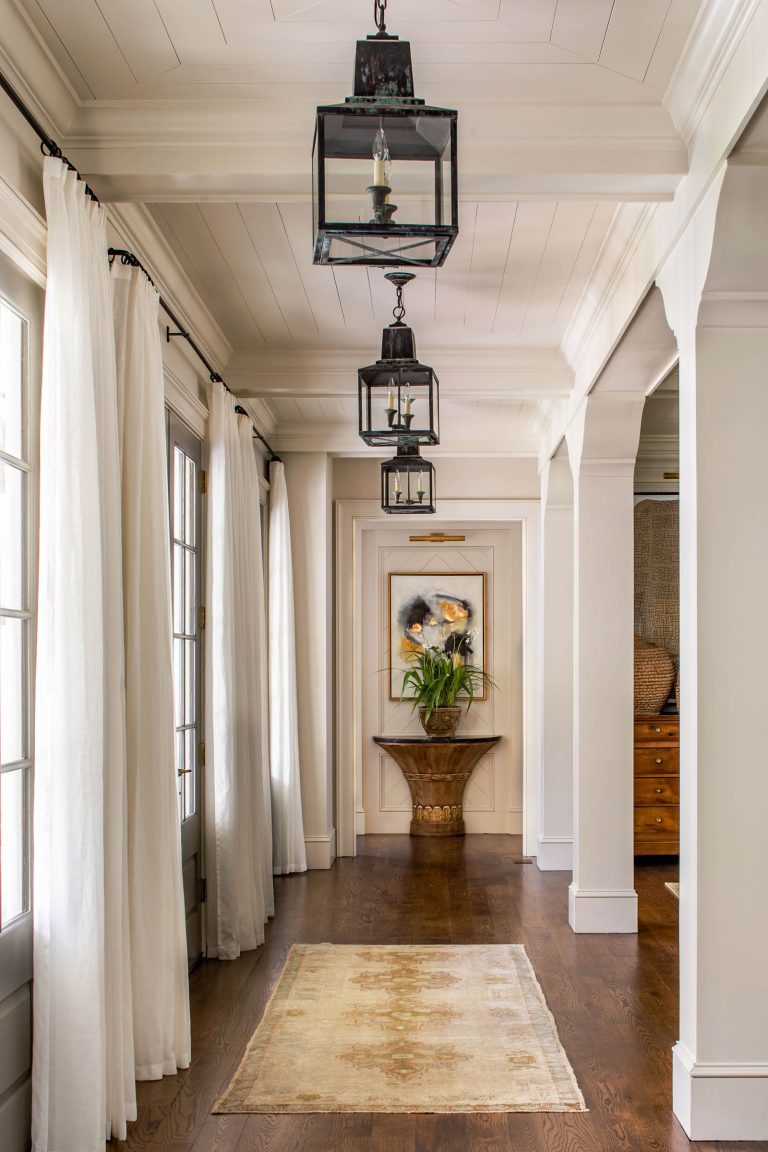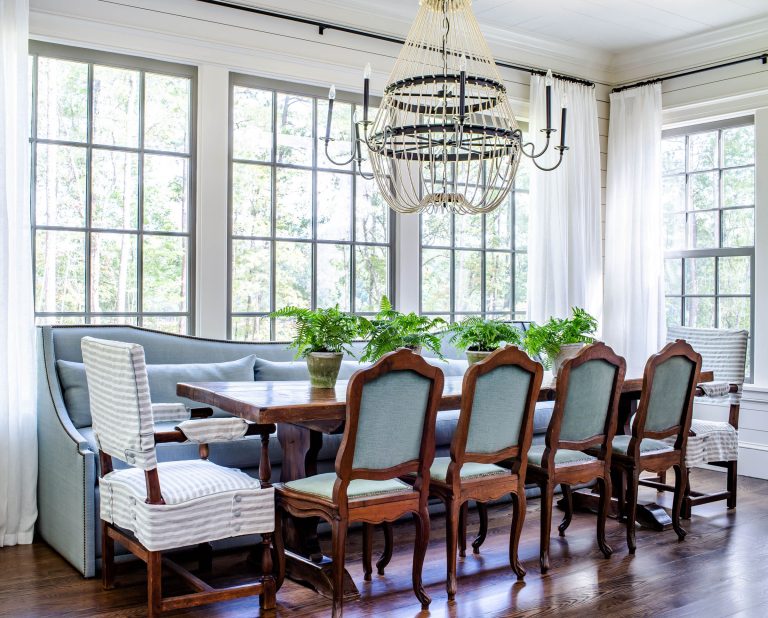 Inside, traditional details are tempered by wood-planked walls and animated, nautical nods. A flowing room arrangement allows moments of open connectivity to co-mingle with more intimate private spaces, with a constant ebb and flow of scale. Porches on three sides of the house create a constant dialogue with the site and afford a casual, relaxed lifestyle in the country.