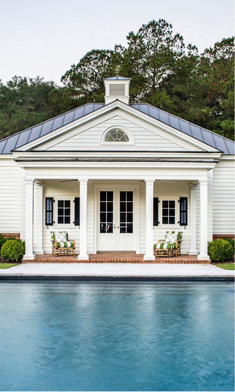 Our response was a house that, although generally formal in feel, resounds with Southern grace, gentility, and ease of character. We called upon the broad spectrum of Southern Architectural Heritage to create a house that echoes with the notes of familiar and beloved details, arranged in a fresh yet respectful composition. We further softened and enlivened the effect with a calculated juxtaposition of detailing and materials – large to delicate, gestural to intricate, formal to relaxed – that plays across the exterior and interior of the home.
